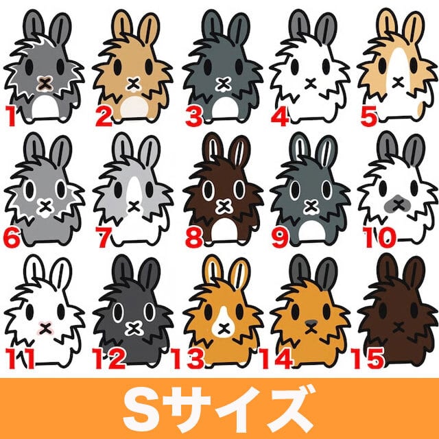 長毛種うさぎさん(たち耳1−15番/たれ耳16-27番) ステッカー Sサイズ【スマホにおすすめ】