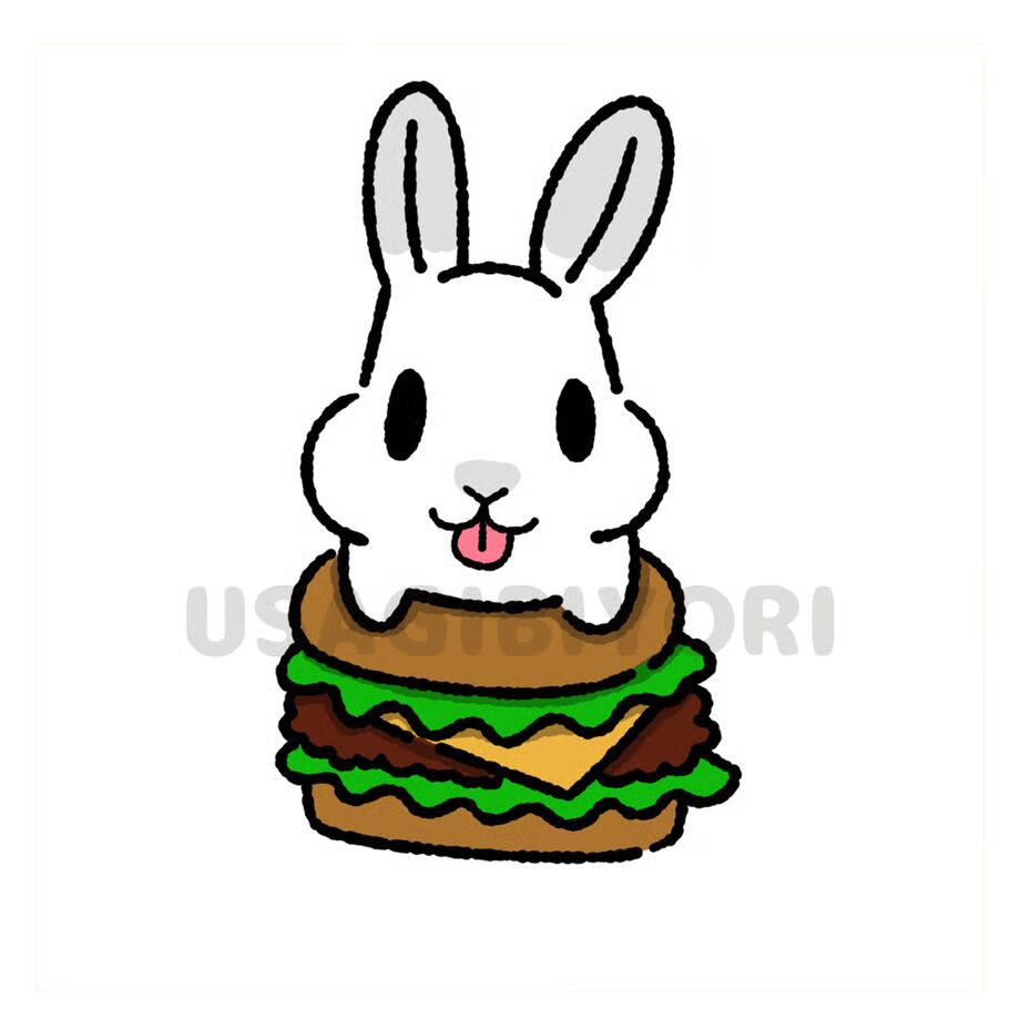ハンバーガーパンをふかふかしてるうさぎステッカーです。