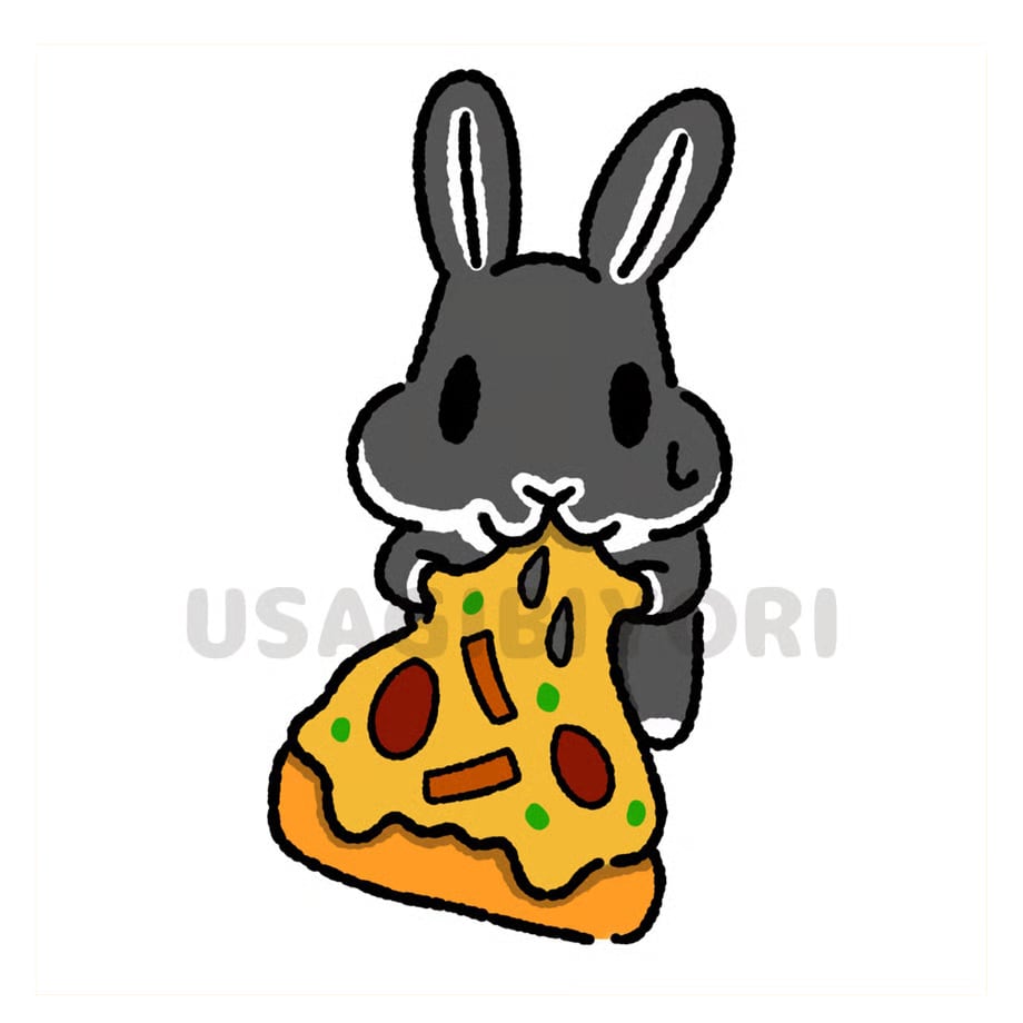 ピザのチーズが伸びすぎて困ってるうさぎステッカーです。