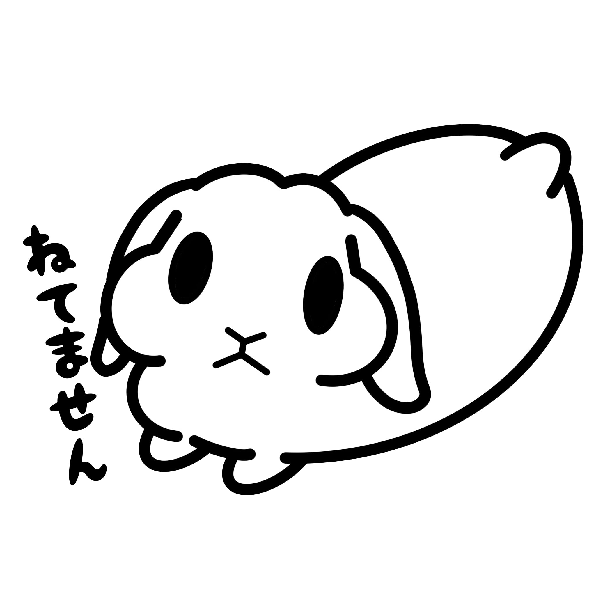 「ねてません」たれ耳うさぎさんステッカー 【うさぎのしぐさシリーズ】