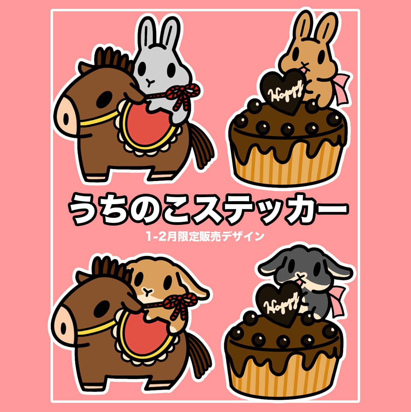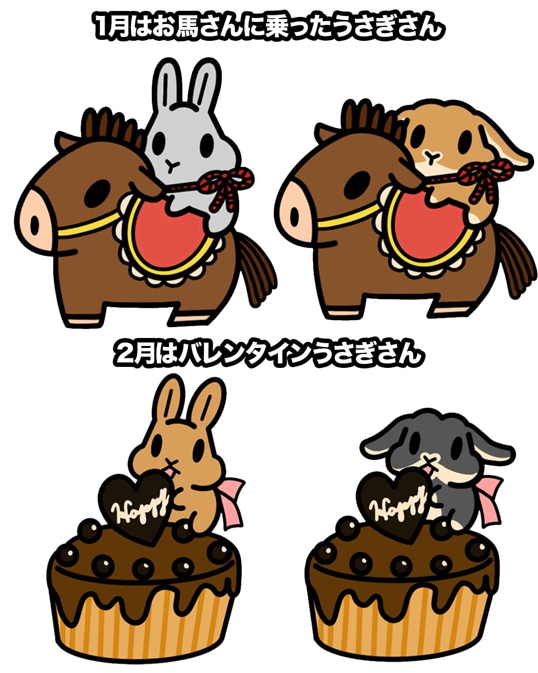1月デザインはお馬さんとうさぎさん、2月デザインはバレンタインうさぎさん